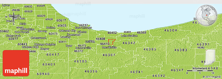 Use the buttons for Facebook, Twitter or Google+ to share a link to this physical map of ZIP code 46409. Maphill is the largest map gallery on the web. However, if the number of maps was the only reason to visit Maphill, then it's really not much.