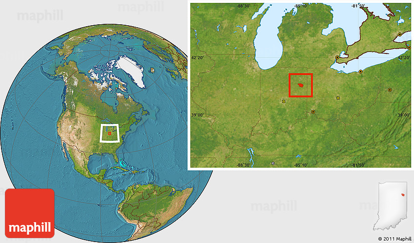 Maphill is a collection of map images. This image combines a satellite map with the globe centered on ZIP code 46714. Use the buttons under the image to switch to different map types.