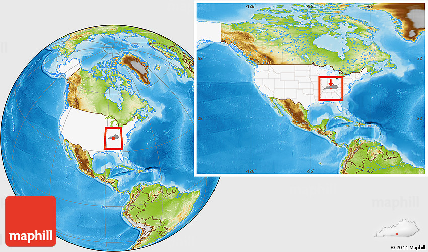 Maphill is a collection of map images. This image combines a physical map with the globe centered on ZIP code 42130. Use the buttons under the image to switch to different map types.
