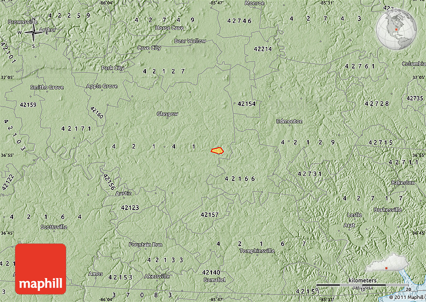 The value of Maphill lies in the possibility to look at the same area from several perspectives. Maphill presents the map of ZIP code 42130 in a wide variety of map types and styles.