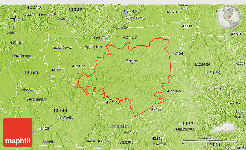 Use the buttons for Facebook, Twitter or Google+ to share a link to this physical map of ZIP code 42141. Maphill is the largest map gallery on the web. However, if the number of maps was the only reason to visit Maphill, then it's really not much.