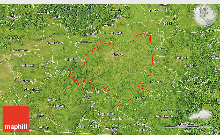 Use the buttons for Facebook, Twitter or Google+ to share a link to this satellite map of ZIP code 42141. Maphill is the largest map gallery on the web. However, if the number of maps was the only reason to visit Maphill, then it's really not much.