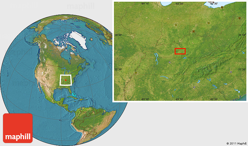 Maphill is a collection of map images. This image combines a satellite map with the globe centered on Halfway. Use the buttons under the image to switch to different map types.