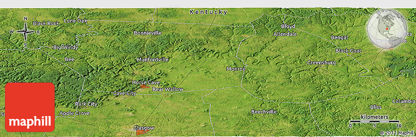 The panoramic satellite map represents one of many map types and styles available. Look at Oil City, Barren County, Kentucky, United States from different perspectives.
