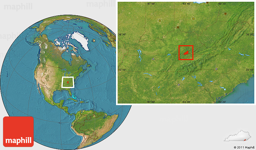The satellite location map represents one of several map types and styles available. Look at Bell County, Kentucky, United States from different perspectives.