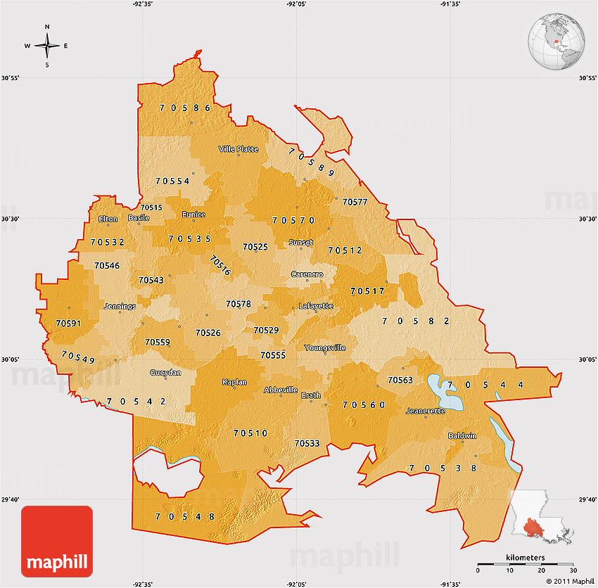 The flat political shades map represents one of several map types and styles available. Look at ZIP codes starting with 705 from different perspectives.