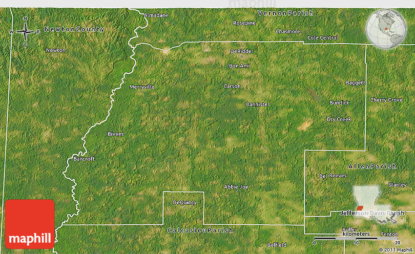 Satellite map shows the Earth's surface as it really looks like. The above map is based on satellite images taken on July 2004. This satellite map of Beauregard Parish is meant for illustration purposes only. For more detailed maps based on newer satellite and aerial images switch to a detailed map view.