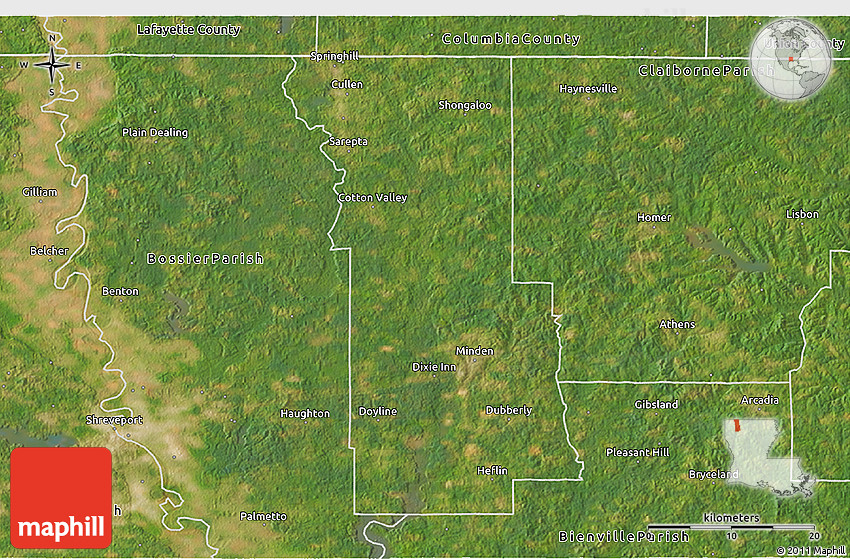 Satellite map shows the Earth's surface as it really looks like. The above map is based on satellite images taken on July 2004. This satellite map of Webster Parish is meant for illustration purposes only. For more detailed maps based on newer satellite and aerial images switch to a detailed map view.