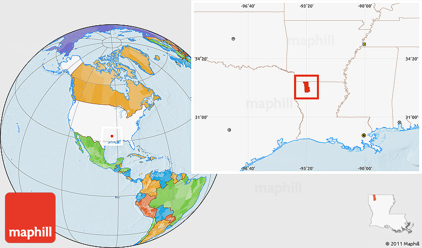 Maphill is a collection of map images. This image combines a political map with the globe centered on Webster Parish. Use the buttons under the image to switch to different map types.