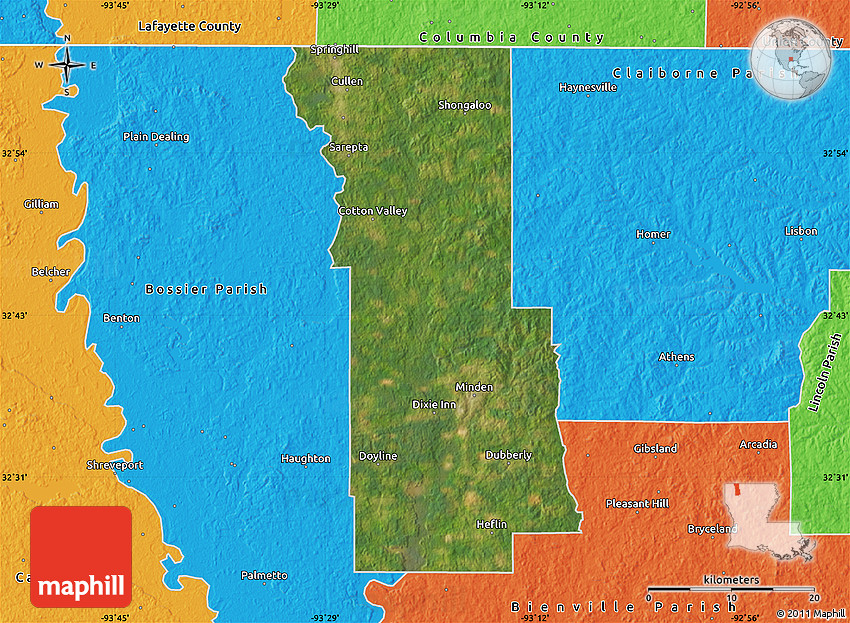 Maphill is a collection of map images. This satellite map of Webster Parish is one of them. Click on the Detailed button under the image to switch to a more detailed map.