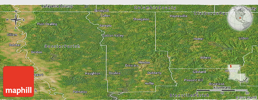 Satellite map shows the Earth's surface as it really looks like. The above map is based on satellite images taken on July 2004. This satellite map of Webster Parish is meant for illustration purposes only. For more detailed maps based on newer satellite and aerial images switch to a detailed map view.