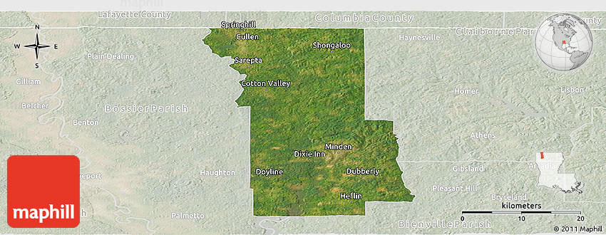 Satellite map shows the Earth's surface as it really looks like. The above map is based on satellite images taken on July 2004. This satellite map of Webster Parish is meant for illustration purposes only. For more detailed maps based on newer satellite and aerial images switch to a detailed map view.