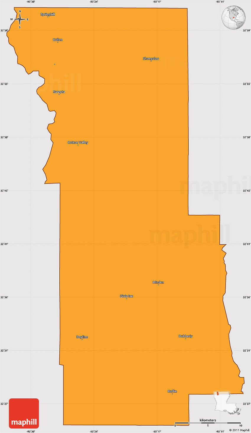 Embed the above political simple map of Webster Parish into your website. Enrich your blog with quality map graphics. Make the web a more beautiful place.