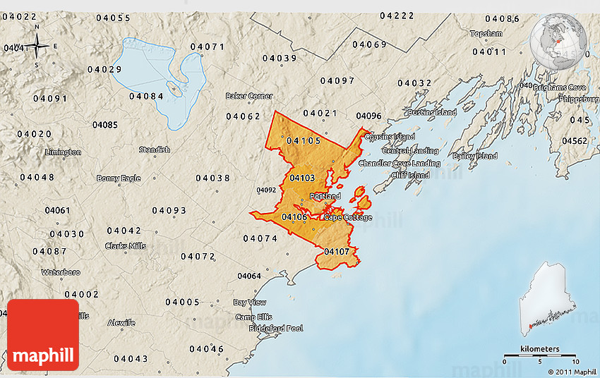 The 3D political shades map represents one of several map types and styles available. Look at ZIP codes starting with 041 from different perspectives.
