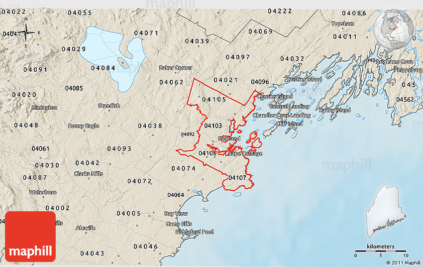 The 3D shaded relief map represents one of several map types and styles available. Look at ZIP codes starting with 041 from different perspectives.