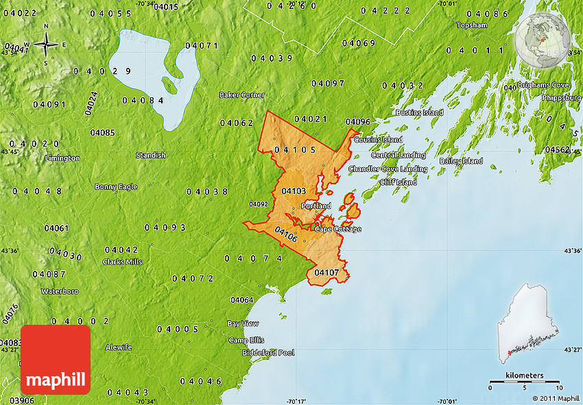The value of Maphill lies in the possibility to look at the same area from several perspectives. Maphill presents the map of ZIP codes starting with 041 in a wide variety of map types and styles.