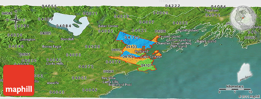 The panoramic political map represents one of several map types and styles available. Look at ZIP codes starting with 041 from different perspectives.