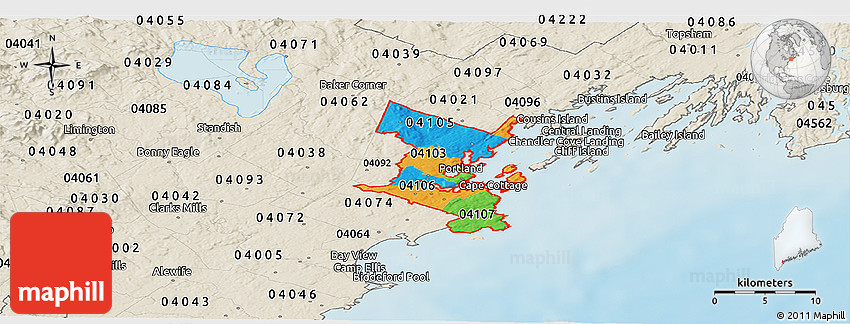 The panoramic political map represents one of several map types and styles available. Look at ZIP codes starting with 041 from different perspectives.