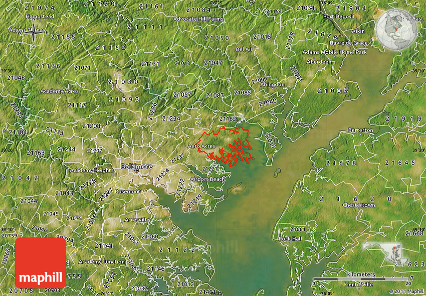Maphill is a collection of map images. This satellite map of ZIP code 21220 is one of them. Click on the Detailed button under the image to switch to a more detailed map.