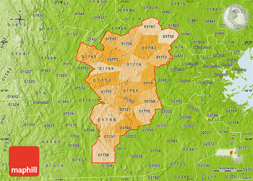 The flat political shades map represents one of several map types and styles available. Look at ZIP codes starting with 017 from different perspectives.