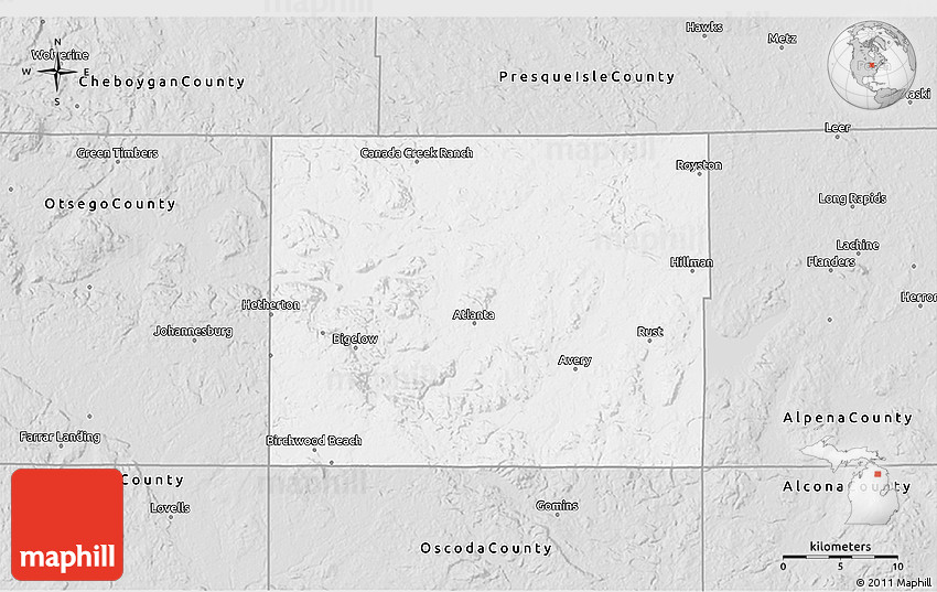 The value of Maphill lies in the possibility to look at the same area from several perspectives. Maphill presents the map of Montmorency County in a wide variety of map types and styles.