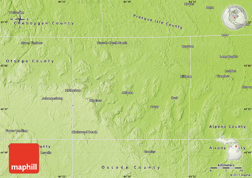 Maphill is a collection of map images. This physical map of Montmorency County is one of them. Click on the Detailed button under the image to switch to a more detailed map.