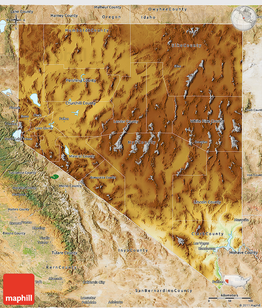 The value of Maphill lies in the possibility to look at the same area from several perspectives. Maphill presents the map of Nevada in a wide variety of map types and styles.