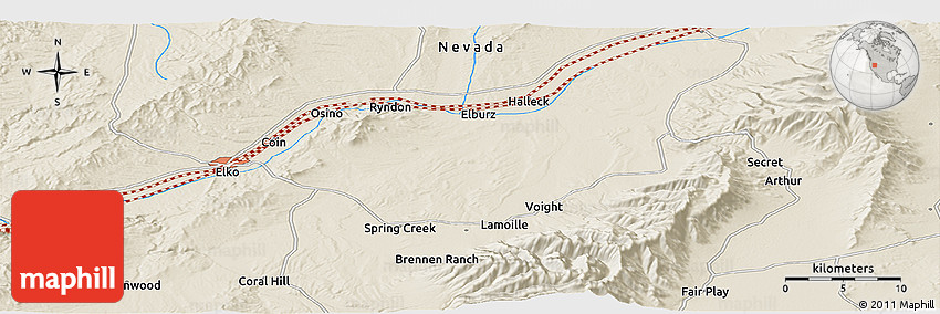 Sure, this shaded relief panoramic map is nice. But there is good chance you will like other map styles even more. Select another style in the above table. See Halleck and Nevada from a different view.