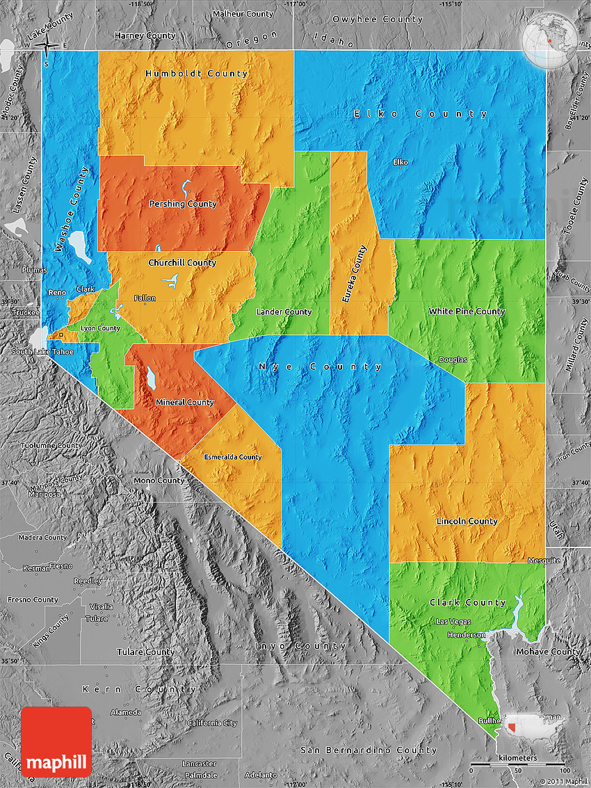 Maphill is a collection of map images. This political map of Nevada is one of them. Click on the Detailed button under the image to switch to a more detailed map.