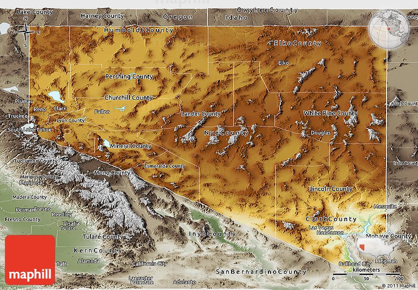 The value of Maphill lies in the possibility to look at the same area from several perspectives. Maphill presents the map of Nevada in a wide variety of map types and styles.
