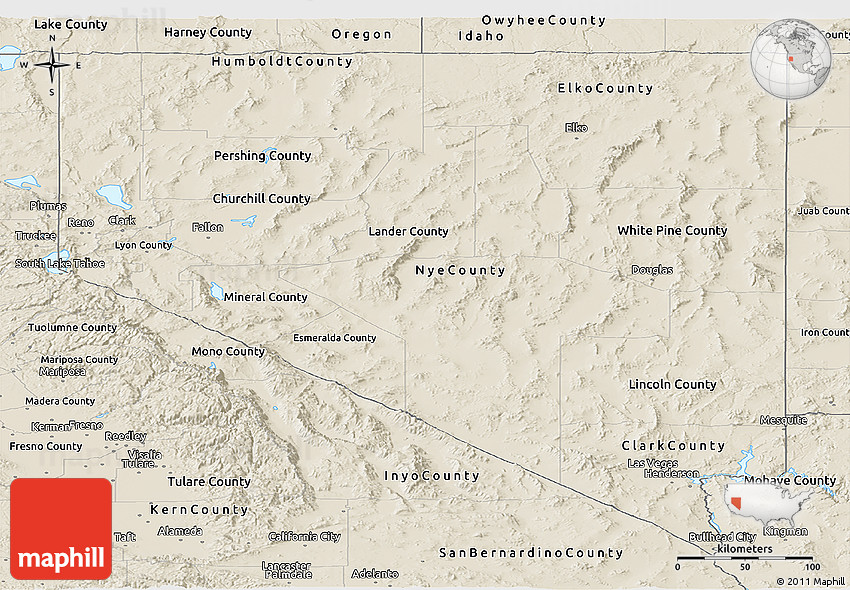 The value of Maphill lies in the possibility to look at the same area from several perspectives. Maphill presents the map of Nevada in a wide variety of map types and styles.
