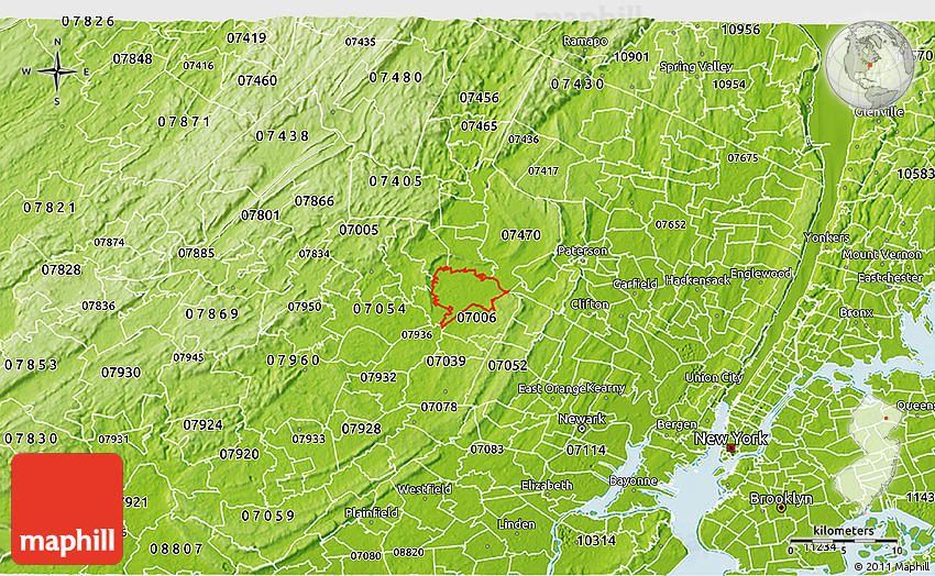 Use the buttons for Facebook, Twitter or Google+ to share a link to this physical map of ZIP code 07004. Maphill is the largest map gallery on the web. However, if the number of maps was the only reason to visit Maphill, then it's really not much.