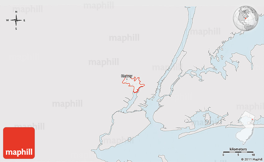 Silver Style Horizon Map of ZIP Code 07032, single color outside