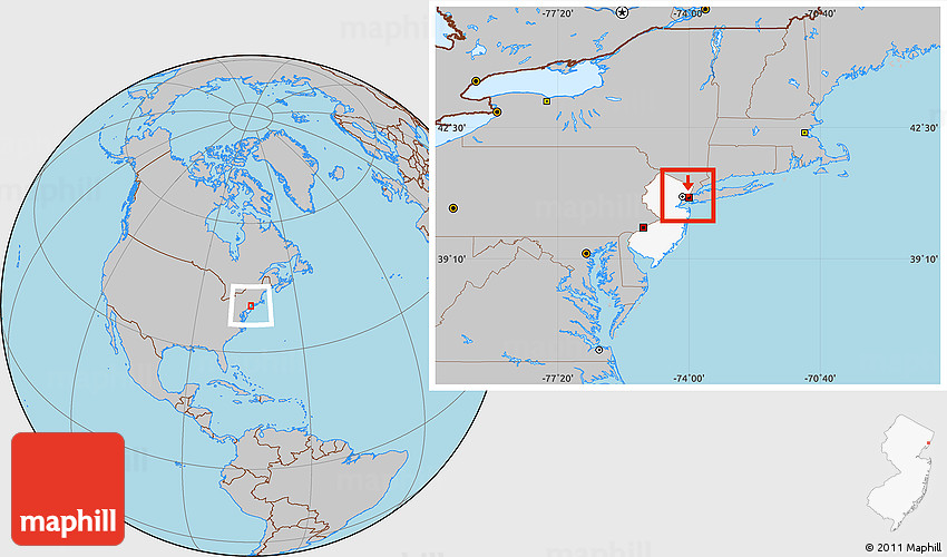 Maphill is a collection of map images. This image combines a gray map with the globe centered on ZIP code 07087. Use the buttons under the image to switch to different map types.