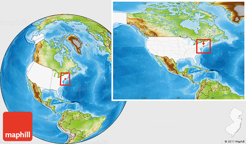 Maphill is a collection of map images. This image combines a physical map with the globe centered on ZIP code 07202. Use the buttons under the image to switch to different map types.
