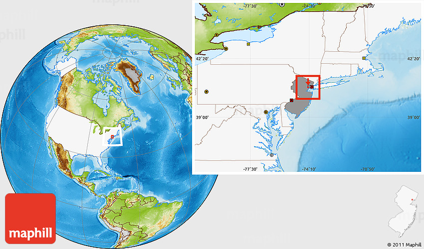 Maphill is a collection of map images. This image combines a physical map with the globe centered on ZIP code 07205. Use the buttons under the image to switch to different map types.