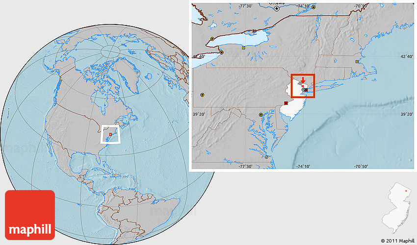 Maphill is a collection of map images. This image combines a gray map with the globe centered on ZIP code 07508. Use the buttons under the image to switch to different map types.