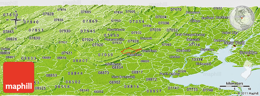 The panoramic physical ZIP code map represents one of several map styles available. Look at ZIP code 07922 from different perspectives.