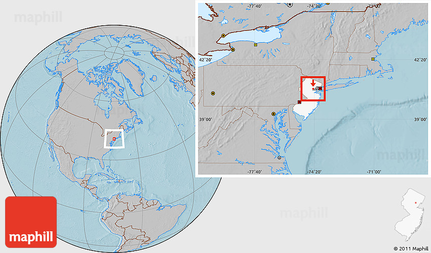 Maphill is a collection of map images. This image combines a gray map with the globe centered on ZIP code 07974. Use the buttons under the image to switch to different map types.