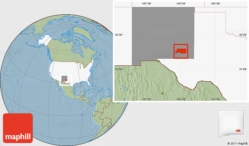 Maphill is a collection of map images. This image combines a savanna style map with the globe centered on ZIP code 88210. Use the buttons under the image to switch to different map types.