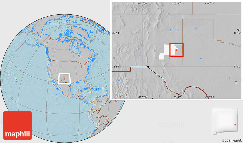 Maphill is a collection of map images. This image combines a gray map with the globe centered on ZIP code 88213. Use the buttons under the image to switch to different map types.
