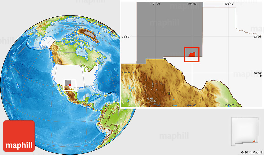 Maphill is a collection of map images. This image combines a physical map with the globe centered on ZIP code 88256. Use the buttons under the image to switch to different map types.