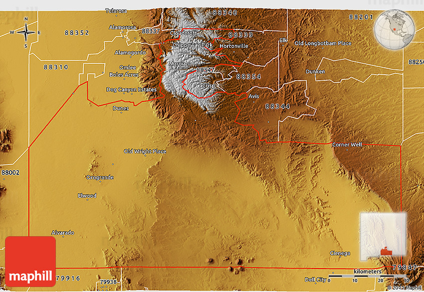 Use the buttons for Facebook, Twitter or Google+ to share a link to this physical map of ZIP code 88317. Maphill is the largest map gallery on the web. However, if the number of maps was the only reason to visit Maphill, then it's really not much.