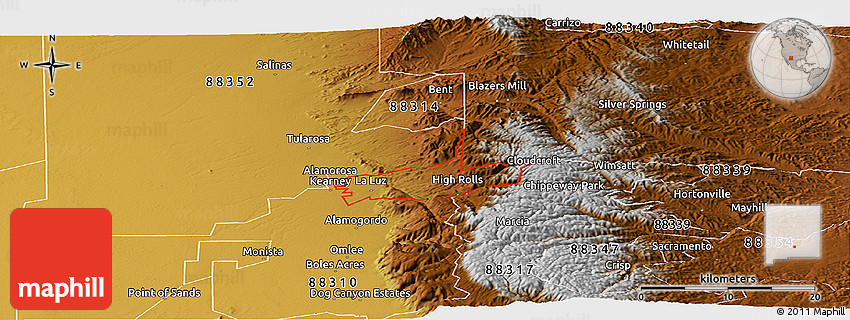 Maphill is a collection of map images. This perspective view of ZIP code 88337 at an angle of 30° is one of these images. Use the Detailed button under the image to switch to a detailed map.