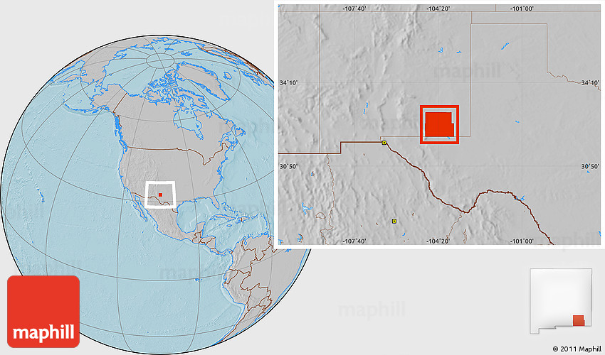 Maphill is a collection of map images. This image combines a gray map with the globe centered on Eddy County. Use the buttons under the image to switch to different map types.