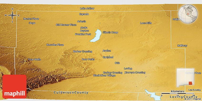 The panoramic physical map represents one of several map types and styles available. Look at Eddy County, New Mexico, United States from different perspectives.