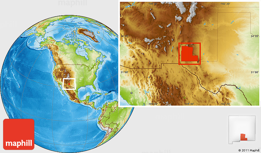 Maphill is a collection of map images. This image combines a physical map with the globe centered on Otero County. Use the buttons under the image to switch to different map types.