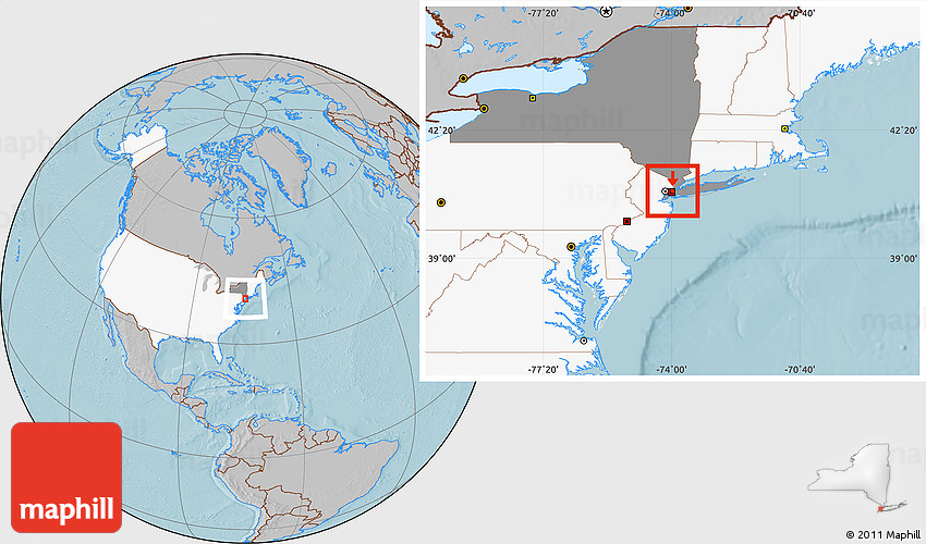 Maphill is a collection of map images. This image combines a gray map with the globe centered on ZIP code 10016. Use the buttons under the image to switch to different map types.