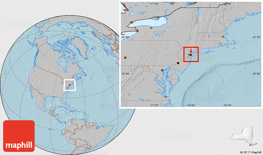 Maphill is a collection of map images. This image combines a gray map with the globe centered on ZIP code 10016. Use the buttons under the image to switch to different map types.