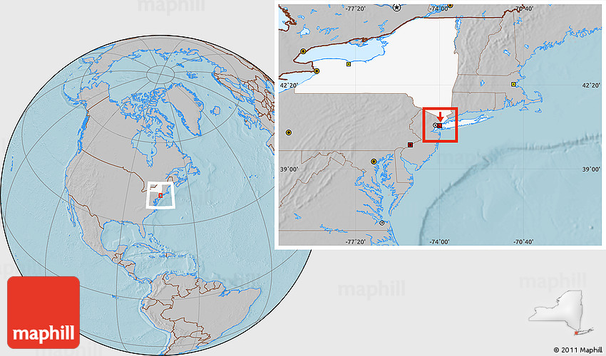 Maphill is a collection of map images. This image combines a gray map with the globe centered on ZIP code 10016. Use the buttons under the image to switch to different map types.